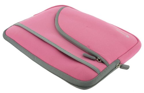 rooCASE Neoprene Netbook Sleeve Case Cover for Toshiba NB505-N508GN 10.1-Inch Netbook Green (Invisible Zipper Triple-Pocket - Pink) Overviews
